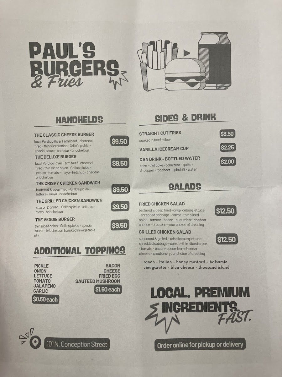 Paul's Burgers and Fries offers a focused menu that celebrates fresh, handcrafted burgers and classic sides in the heart of Mobile, AL. Their Deluxe Burger and Classic Cheeseburger showcase locally sourced Perdido River meats, charbroiled to perfection with thin-sliced onions, Grillo’s pickles, and melted cheddar on a buttery brioche bun. Customers rave about the bold flavors and quality of each patty, urging you to try the double for a truly satisfying experience.